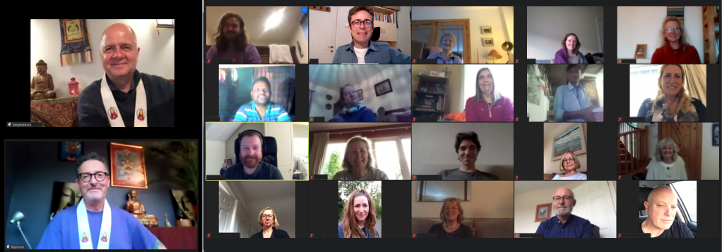 In these Zoom sessions, on weekday mornings from 7.30 – 8am, we alternate the Mindfulness of Breathing practice with a loving kindness practice called the Metta Bhavana.